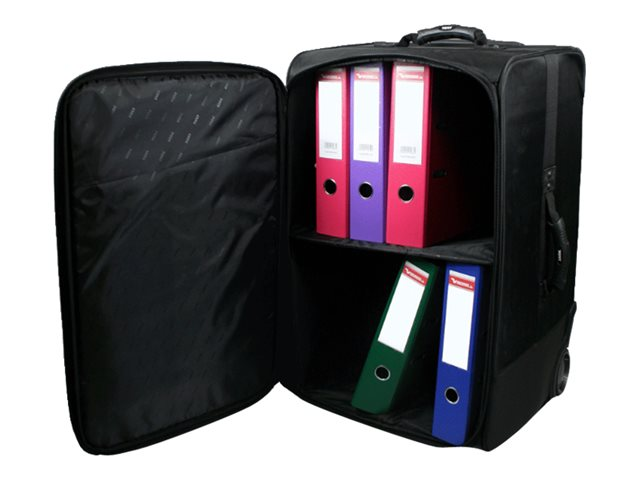 Valise à roulettes pour le transport de classeurs ou objets de grandes dimensions. Capacité de 85 litres : dimensions intérieures 40,0 x 36,0 x 61,0 cm.