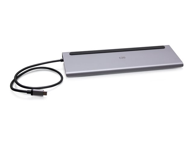 C2G USB-C 10-in-1 Triple Display Docking Station with HDMI, DisplayPort, VGA, Ethernet, USB, SD Card Reader, 3.5mm Audio and Power Delivery up to 100W