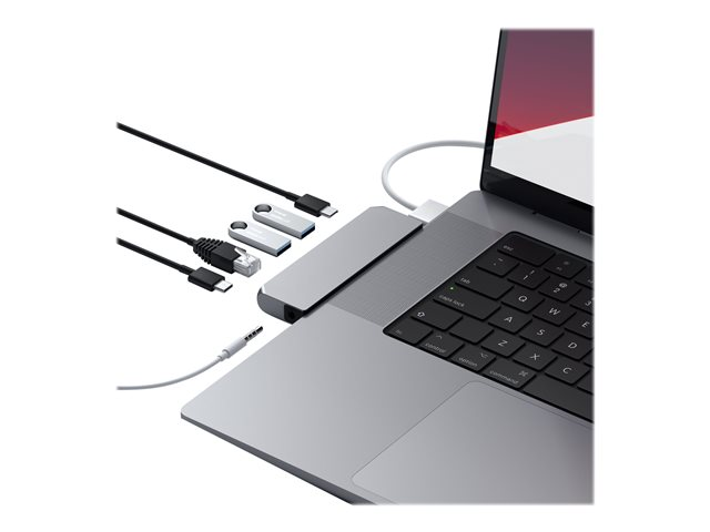 Description du produit Satechi Pro Hub Mini - station d'accueil - USB-C x 2 - USB4 - 1GbE Type de Produit Station d'accueil Interface de station d'accueil USB-C x 2 Interfaces vidéo USB4 Dimensions (LxPxH) 10.1 cm x 3.81 cm x 1.19 cm Couleur Gris sidéral Réseaux Gigabit Ethernet Garantie du fabricant 1 an de garantie -