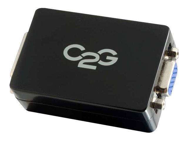 Description du produit C2G Pro DVI-D to VGA Converter - convertisseur vidéo - noir Type de périphérique Convertisseur vidéo Résolution maximale 1920 x 1200 Interfaces 1 x entrée DVI-D - DVI combiné 29 broches
