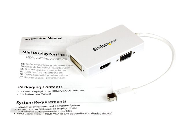 StarTech.com Adaptateur de voyage Mini DisplayPort vers DVI / VGA / HDMI pour MacBook