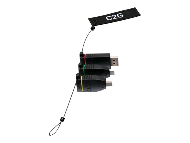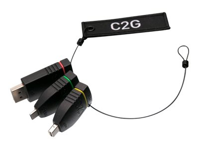 Description du produit C2G Universal Adapter Ring with Color Coded Connectors - Kit d'adaptateur vidéo / audio - DisplayPort / HDMI / USB Câble Kit d'adaptateur vidéo / audio - DisplayPort / HDMI / USB Nombre inclus 3 Couleur Noir Fonctions Support 4K Garantie du fabricant Garantie limitée à vie -