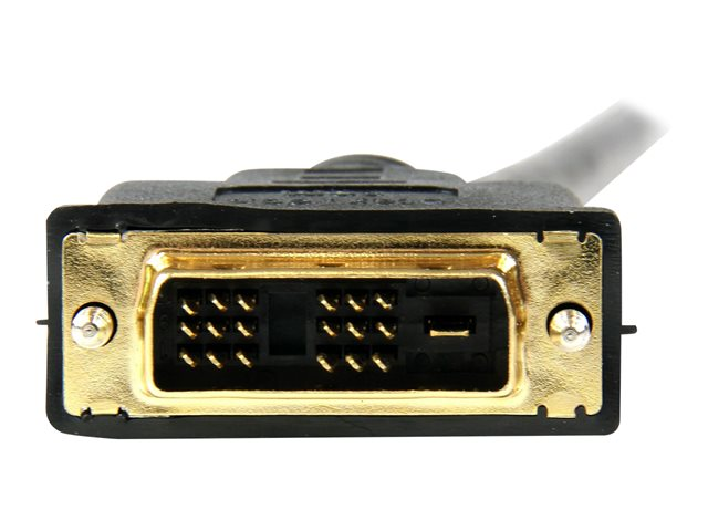 Le câble HDMI -DVI-D de 1 mètre HDDVIMM1M vous permet de raccorder une carte vidéo DVI-D (ou un autre appareil à sortie DVI-D) à un écran doté de la technologie HDMI. Le câble prend en charge un fonctionnement bidirectionnel qui permet également une configuration inversée, fournissant un signal vidéo numérique à partir d'une sortie HDMI et l'envoyant vers un écran compatible DVI-D.