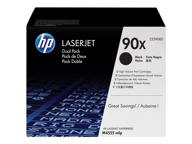 Les lot de deux cartouches de toner HP 90X Noir offrent un meilleur rapport qualité prix que les cartouches individuelles. Produisez plus de pages pour un prix inférieur et simplifiez la commande avec deux cartouches fournies ensemble. Imprimez des documents de qualité professionnelle qui impressionnent.