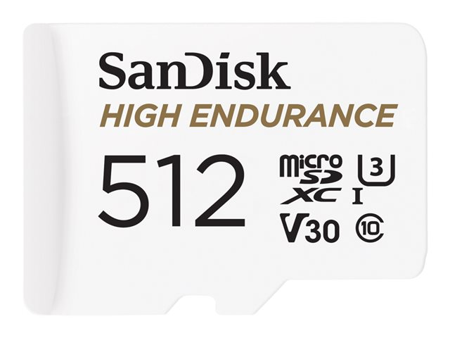 Description du produit SanDisk High Endurance - carte mémoire flash - 512 Go - microSDXC UHS-I Type du Produit Carte mémoire flash Format Carte mémoire microSDXC UHS-I Capacité de stockage 512 Go Indice de vitesse Video Class V30 / UHS-I U3 / Class10 Adaptateur mémoire fourni Adaptateur microSDXC vers SD Garantie du fabricant Garantie de 2 ans -