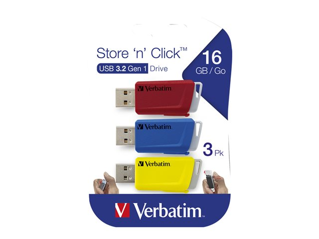 Clé USB - 16 Go - USB 3.2 Gen 1 - bleu, jaune, rouge (pack de 3)