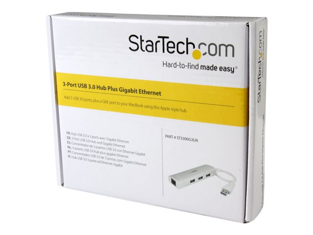 StarTech.com Hub USB 3.0 portable à 3 ports avec Gigabit Ethernet