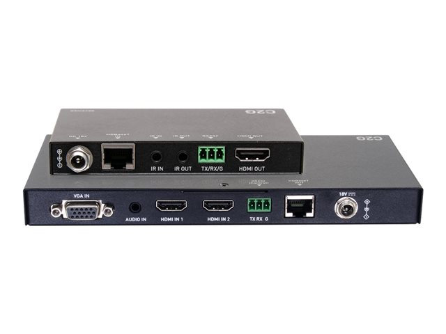 C2G Dual 4K HDMI HDBaseT + VGA, 3.5mm, and RS232 over Cat Switching Extender Box Transmitter to Ultra-Slim Box Receiver