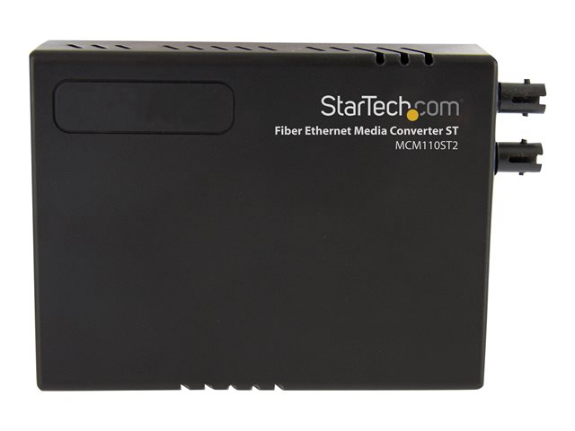 Le convertisseur Ethernet fibre optique multimode ST 10/100 MCM110ST2EU (2 km) crée une liaison Ethernet-fibre optique économique, qui convertit de façon transparente vers/depuis des signaux Ethernet 10Base-T ou 100Base-Tx et optiques 100Base-Fx pour l'extension d'une connexion réseau Ethernet sur une infrastructure en fibre optique multimode.
