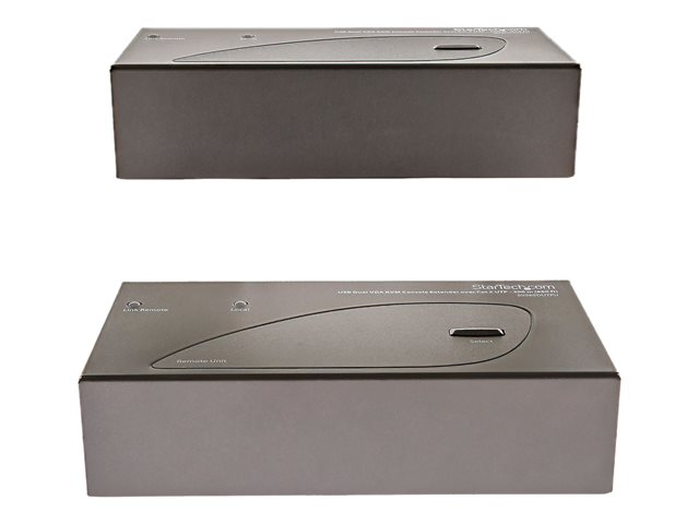 L'extendeur KVM double VGA sur Cat5 prend en charge les boutons poussoirs et les raccourcis clavier d'utilisation facile, qui vous permettent de permuter entre les systèmes connectés localement et à distance, alors que les branchements de console aux deux extrémités de votre configuration offrent un accès facile à tous les systèmes connectés aux deux endroits. Les raccourcis clavier permettent également de régler la vidéo pour optimiser la qualité de l'image sur diverses distances. L'extension sur deux câbles standard Cat5 (ou plus) vous permet d'utiliser le câblage existant afin d'assurer l'accès à distance à votre serveur ou à votre commutateur KVM.