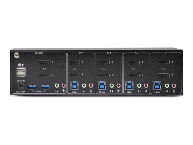 StarTech.com 4-Port Dual-Monitor DisplayPort KVM Switch, 4K 60Hz, 2x USB 5Gbps Hub Ports, 2x USB 2.0 HID Ports, Hotkey and Push-Button Switching, TAA Compliant