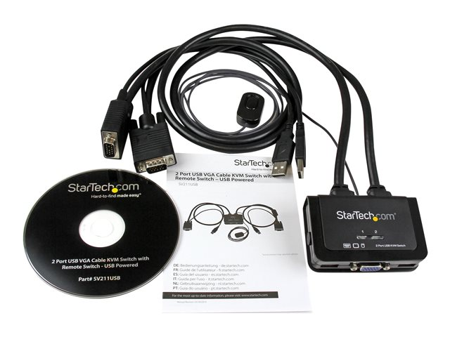 Le commutateur KVM VGA 2 ports avec câbles SV211USB vous permet de contrôler deux PC VGA USB avec un seul jeu de clavier, souris et écran.