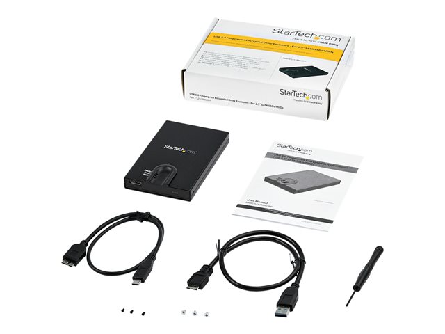 StarTech.com Boîtier de disque dur SATA de 2,5" crypté - Accès par empreinte digitale - Boitier externe - 2.5" - SATA 6Gb/s - USB 3.0 - noir - Conformité TAA