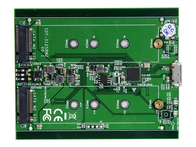Directement alimenté par le port USB de votre appareil, le boîtier M.2 SATA RAID ne nécessite aucune alimentation externe. Il est livré avec deux câbles USB (USB-C vers Micro-B et USB-A vers Micro-B) pour faciliter sa connexion aux derniers ordinateurs portables et tablettes équipés d'un port USB-Type C , mais aussi aux appareils plus anciens. Indépendant du système d'exploitation, ce boîtier ne nécessite l'installation d'aucun logiciel ni pilote supplémentaire. Il est également compatible avec un port USB-C Thunderbolt 3.