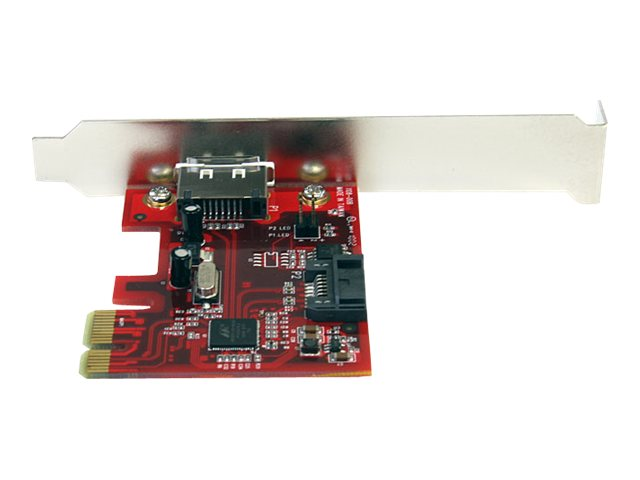 StarTech.com Adaptateur de carte contrôleur SATA PCI Express 1x eSATA + 1x SATA 6 Gbps - Contrôleur de stockage (RAID) - SATA 6Gb/s / eSATA 6Gb/s - profil bas - RAID RAID 0, 1, JBOD - PCIe 2.0 x1 - rouge - pour P/N: S251SMU33EP, S3520BU33ER, S355BU33ERM, ST521PMINT