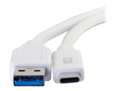 C2G 10ft USB C 3.0 to USB Cable - USB C to USB A - M/M - Câble USB - USB type A (M) pour 24 pin USB-C (M) - USB 3.1 - 30 V - 3 A - 3.05 cm - blanc 28837
