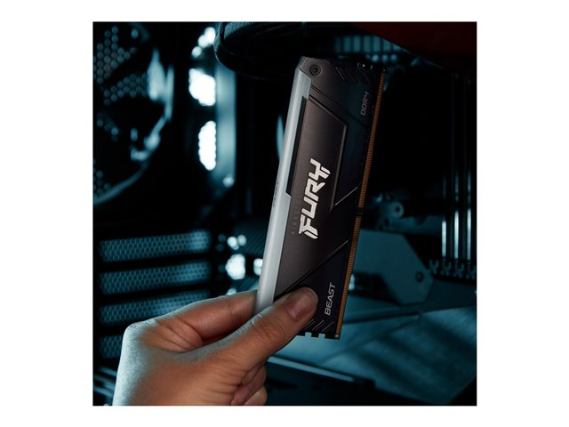 Le module Kingston FURY Beast DDR4 RGB offre une augmentation des performances avec des vitesses allant jusqu'à 3733MHz, avec un style agressif où son éclairage RGB sur toute la longueur du module produit des effets fluides et étonnants. Cette mise à niveau éblouissante et rentable est disponible à des vitesses de 2666MHz-3733MHz, des latences CL15-19, des capacités de 8Go-32Go en module simple, et de 16Go-128Go en kit. Son overclocking automatique Plug and Play à des vitesses de 2666MHz est disponible sur Intel XMP et AMD Ryzen. Le module FURY Beast DDR4 RGB reste froid grâce à son diffuseur de chaleur élégant et mince.