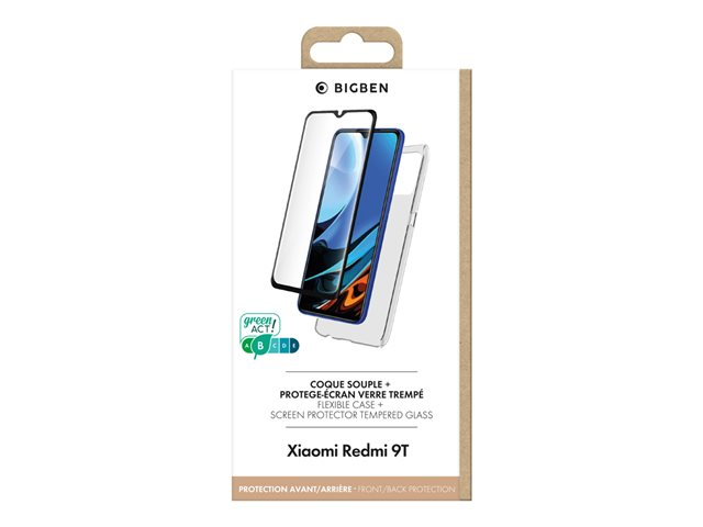 BIGBEN Connected - Coque de protection pour téléphone portable - polyuréthanne thermoplastique (TPU) - transparent - avec protection d'écran en verre trempé 2.5D (9H) - pour Xiaomi Redmi 9T